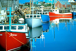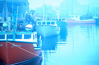 | These two photographs of Peggy's Cove, Nova Scotia, demonstrate the effects that are created by the quality of light on the same subject. The mood that is created as a result of the lighting, in each of the photographs affects the way in which we interpret and respond to each of the scenes. These photographs illustrate just how light changes the appearance of shape, line, texture, colour and contrasts. Both clearly show the importance of using light as a tool in creative photography. | Photography is about light, and the effects that it creates. Light gives form by creating contrast: contrast of tones and contrast of colour. Form is made up of the shapes, lines, size, direction, and textures that have been created by these contrasts. These are the visual elements of design which are used in all the two- | |